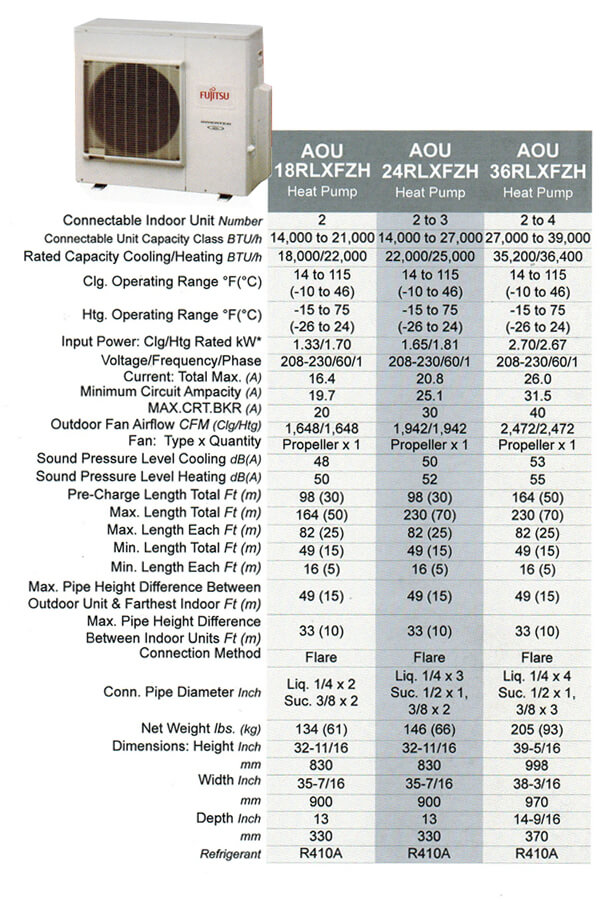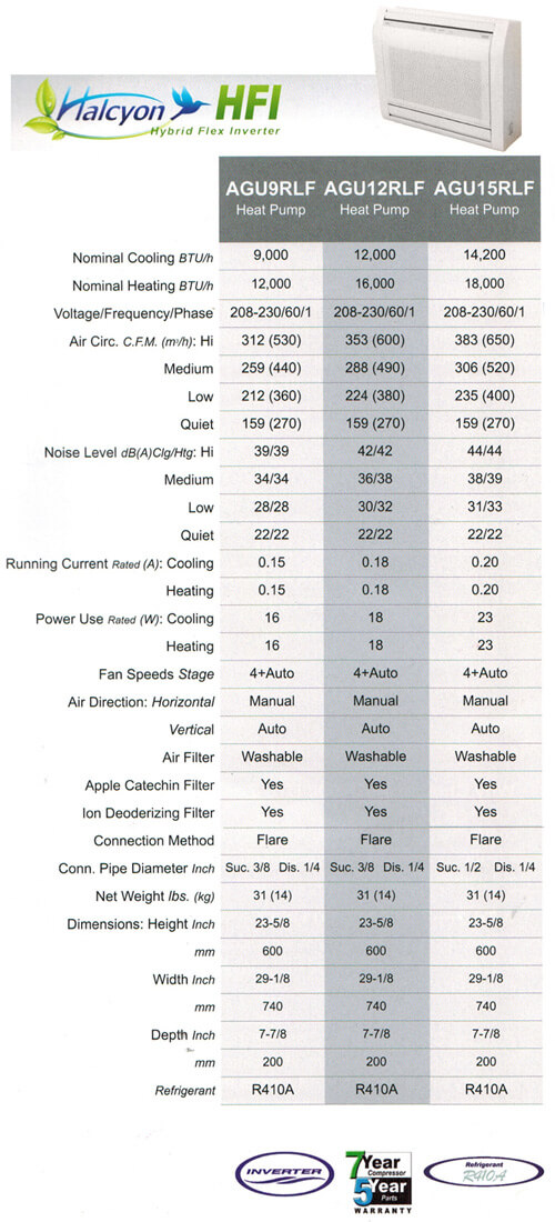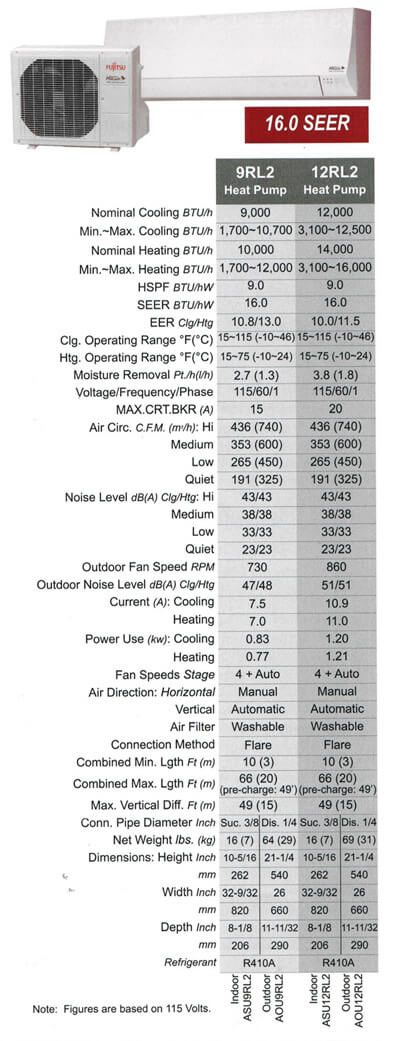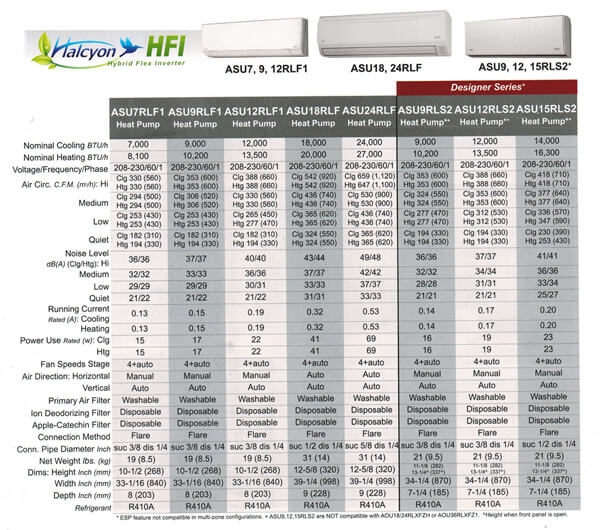 a clean, aesthetic design and are small but mighty and shorter in length than competing units, helping them blend into any room. These 16-SEER heat pump systems now feature Inverter technology, environmentally friendly R410A refrigerant, both heating and cooling operation, quiet mode and easy maintenance.